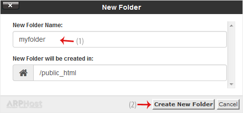 5. In the New Folder Name field, enter your folder name, such as my-folder. Then click on Create New Folder.
