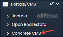 4. On the left side, type Concrete CMS in the search box, then click the Concrete CMS link that appears.