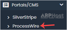 4. On the left side, type ProcessWire in the search box, then click the ProcessWire link that appears.